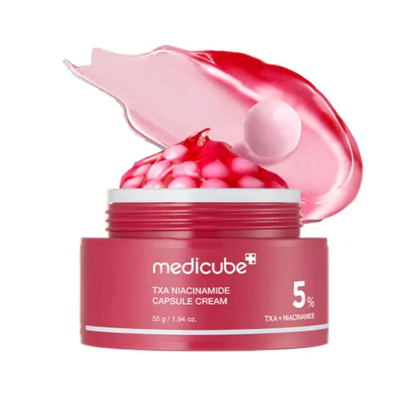 Medicube TXA Niacinamide Capsule Cream es una crema facial correctora de manchas y tono desigual desarrollada con un enfoque clínico y altamente eficaz. Su fórmula combina 99 % de ácido tranexámico (TXA) y 5 % de niacinamida, dos activos clave reconocidos por su capacidad para iluminar la piel, reducir hiperpigmentación y mejorar la textura cutánea.
