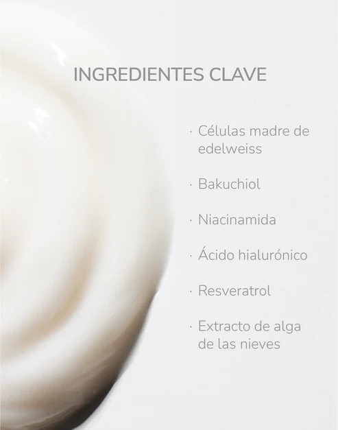 El Alga de las Nieves protege y fortalece la piel a nivel celular, al mismo tiempo que la Niacinamida y el Resveratrol mejoran el tono y la textura de la piel. Además, contiene Ácido Hialurónico y Manteca de Karité para hidratar la piel en profundidad y repulparla al instante, restaurando la barrera cutánea para mantenerla sana. Para una piel más firme, hidratada y luminosa.